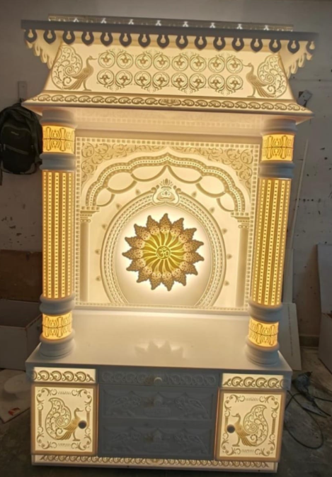 Elevate your spiritual and home décor with this exquisite Krishna Abstract Shree Krishna’s Radiant Mandirl. Featuring a creative and modern artistic interpretation of Lord Krishna, this panel blends traditional spirituality with contemporary design elements. The 3D relief work adds depth and texture, while the soft LED backlight illuminates the artwork with a warm, inviting glow.